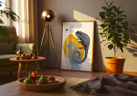 Chameleon on Palm Leaves