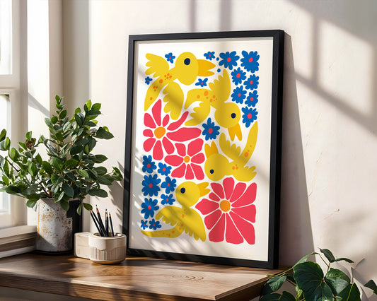 Groovy Yellow Birds and Flowers
