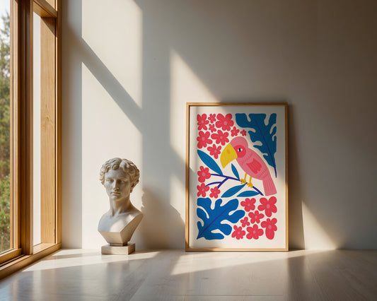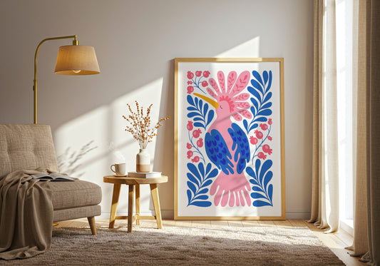Groovy Pink Bird and Flowers