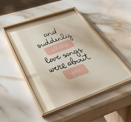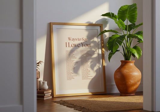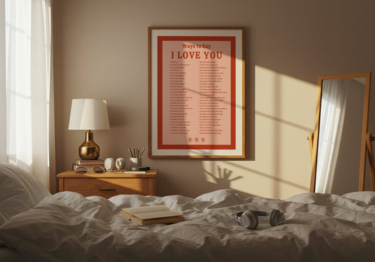 Don't just show your love and passion, make it a statement with the Love collection, featuring exquisite romantic posters that bring warmth and emotion to any room. This carefully curated selection includes elegant romantic wall art and heartfelt love posters perfect for bedrooms, living spaces, or as meaningful gifts. With designs ranging from poetic typography to tender illustrations, these prints turn feelings into art, creating an intimate and cozy atmosphere. Printed on premium paper with sustainable methods, this collection beautifully celebrates affection and connection in style.