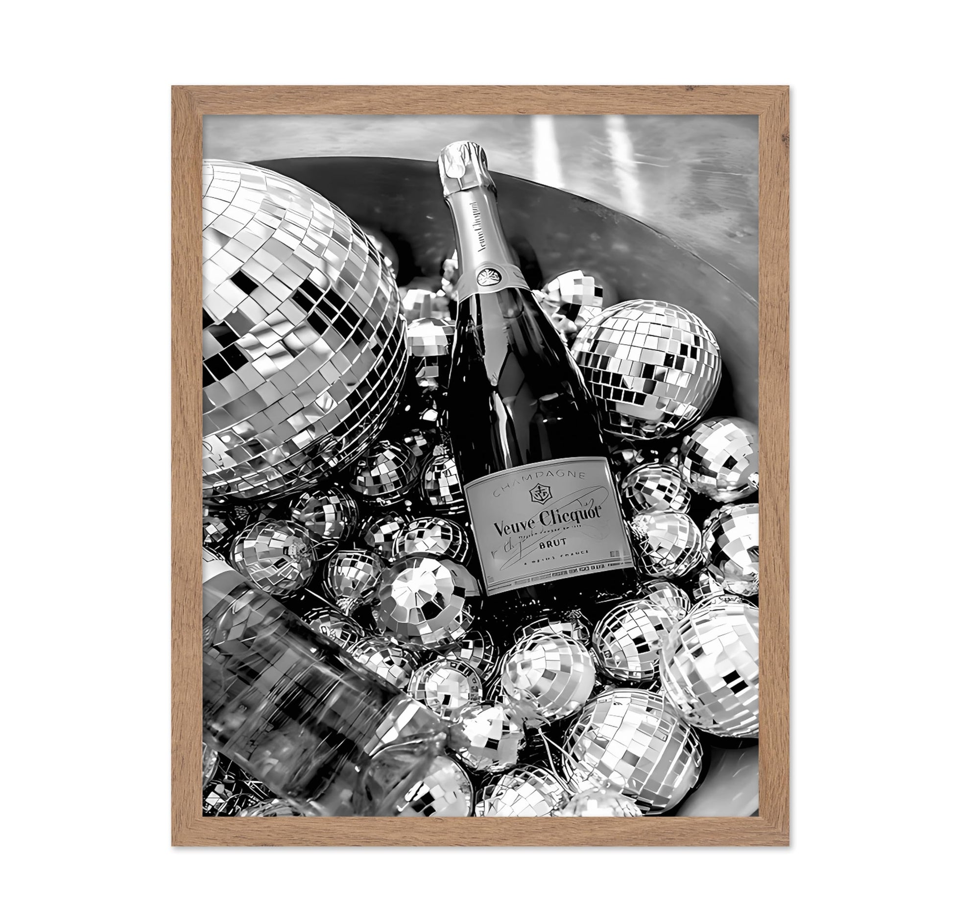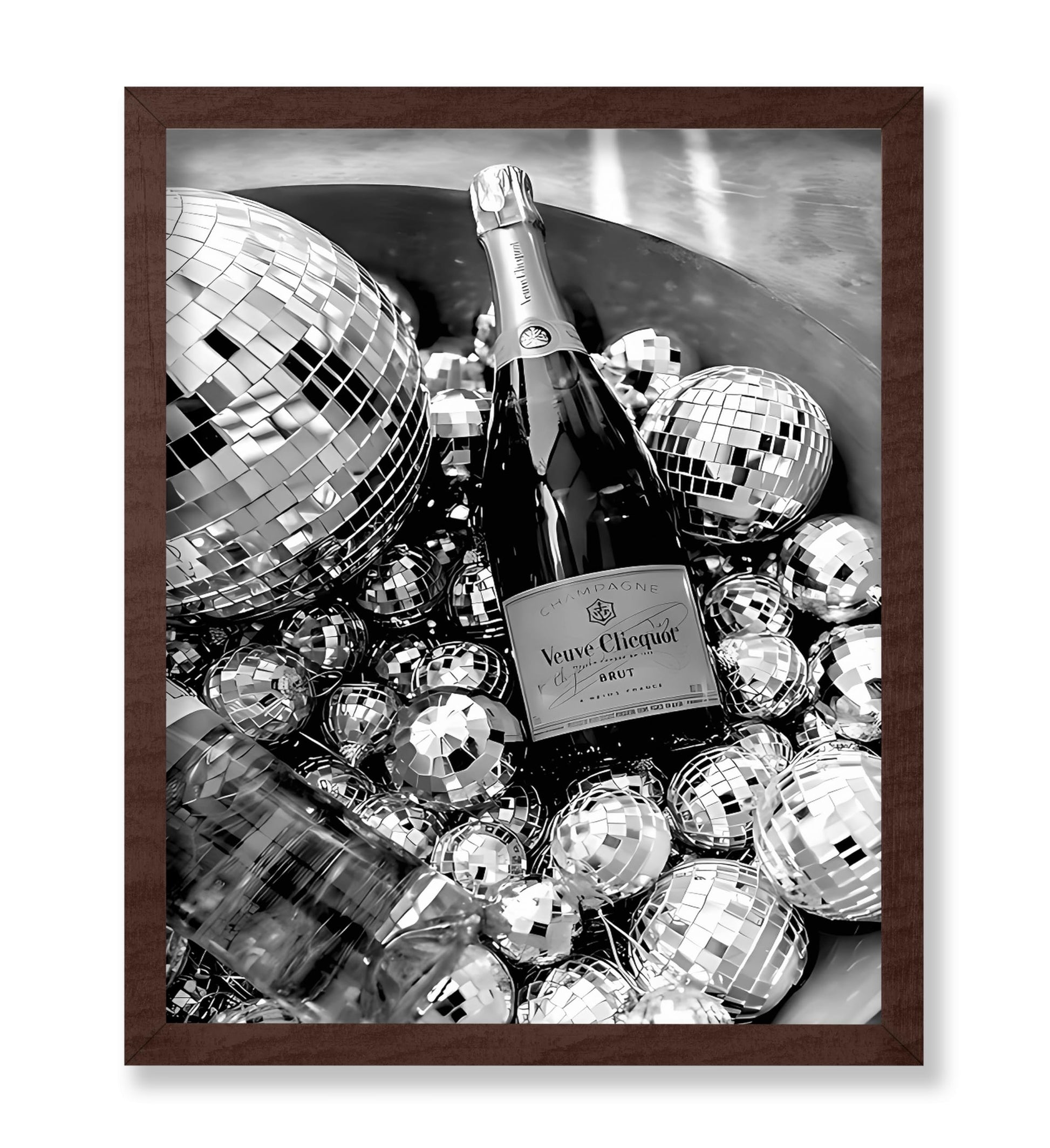 Unleash creativity in rooms, this vibrant party art print shows a champagne bottle chilling in an ice tub surrounded by shiny disco balls. The black and white design mixes celebration vibes with cool party energy that lights up any space. Perfect for home bars, dance areas, or girls' night walls, it brings back feelings of bubbly laughs and late-night fun with friends. The black and white poster captures that special toast moment forever.