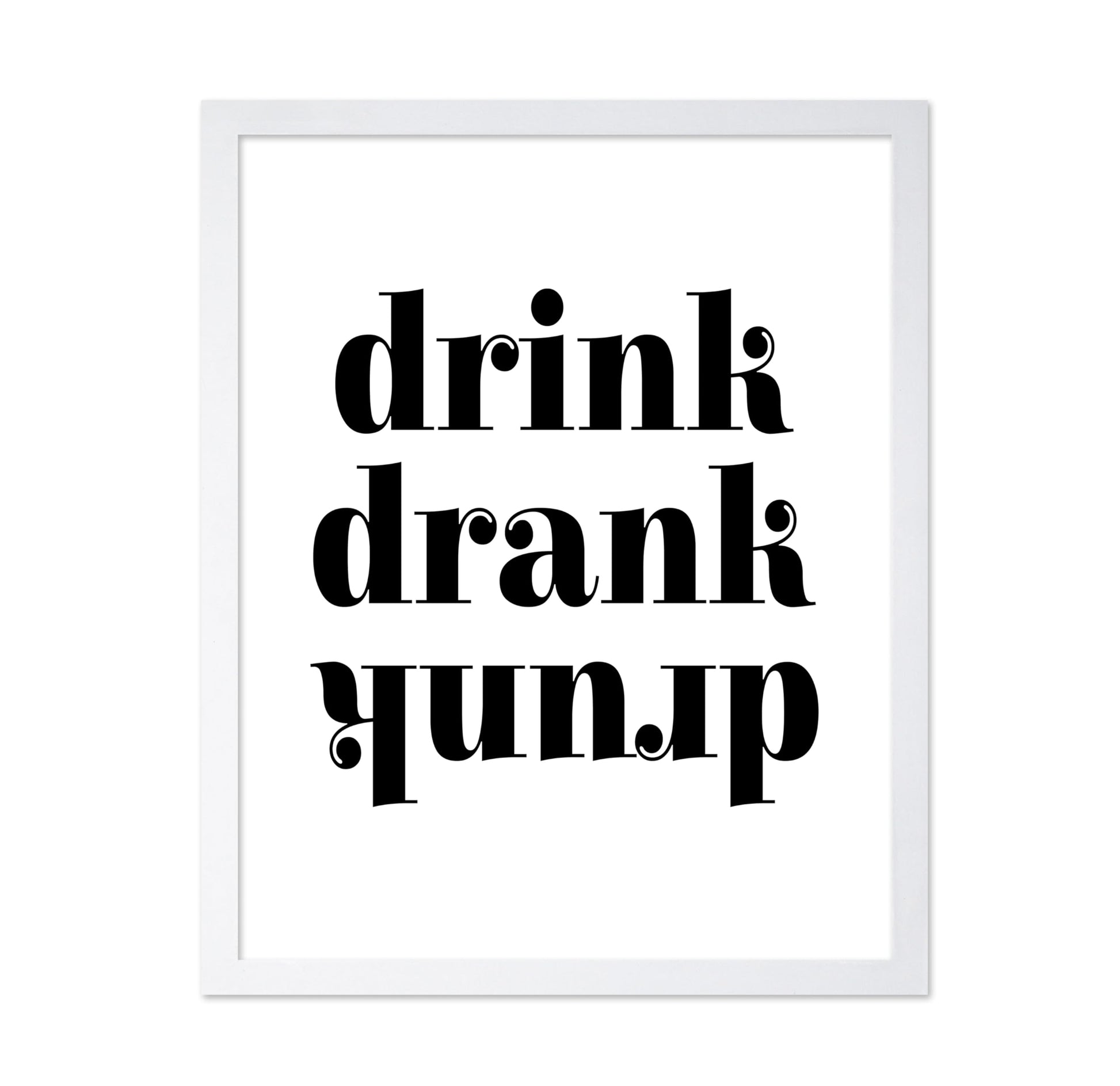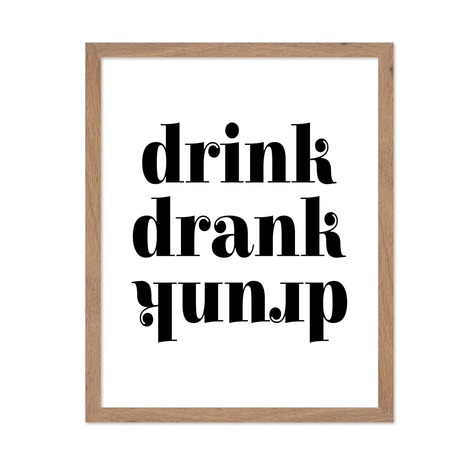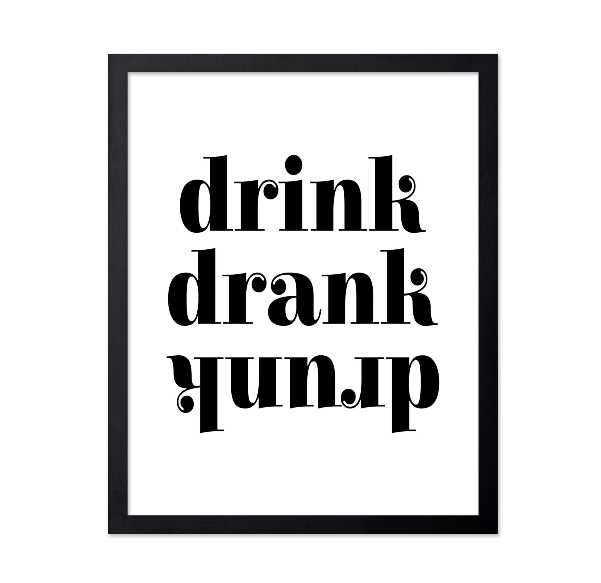 Art that sparks curiosity begins with this playful typography poster titled "Drink Drank Drunk No1." Clean black and white letters capture the fun progression of enjoying drinks together. Perfect for bars, man caves, or party spaces where laughter flows freely. Hang it where friends gather to remind everyone of good times and lighthearted moments. This humorous wall art brings smiles and stories to life on any wall.