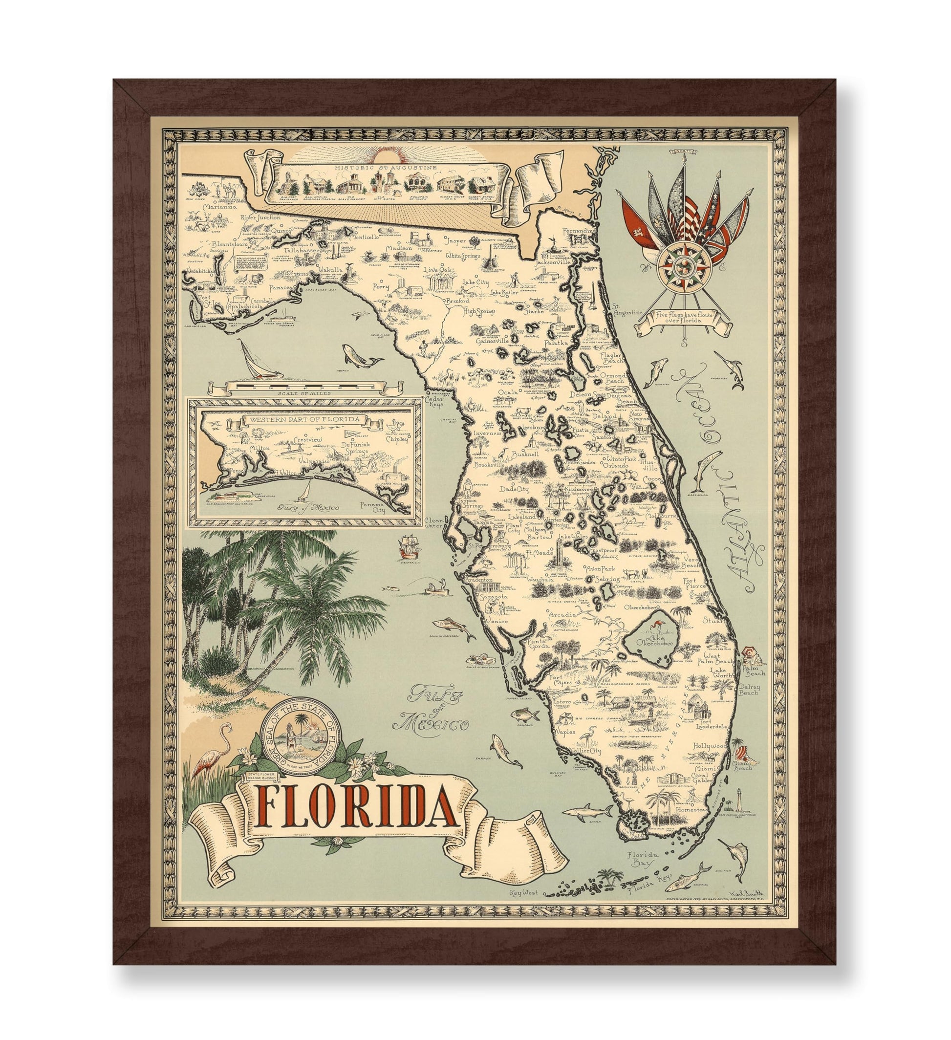 Show off your love for the coast and fishing with this unique vintage fish map of Florida. This colorful art print features popular Florida fish species, such as snapper, trout, and bass, superimposed over a vintage-style map of the state. It captures the excitement of fishing and the beauty of Florida’s aquatic life, making it perfect for anglers and nature enthusiasts. Add a touch of coastal charm to any space with this detailed map art.