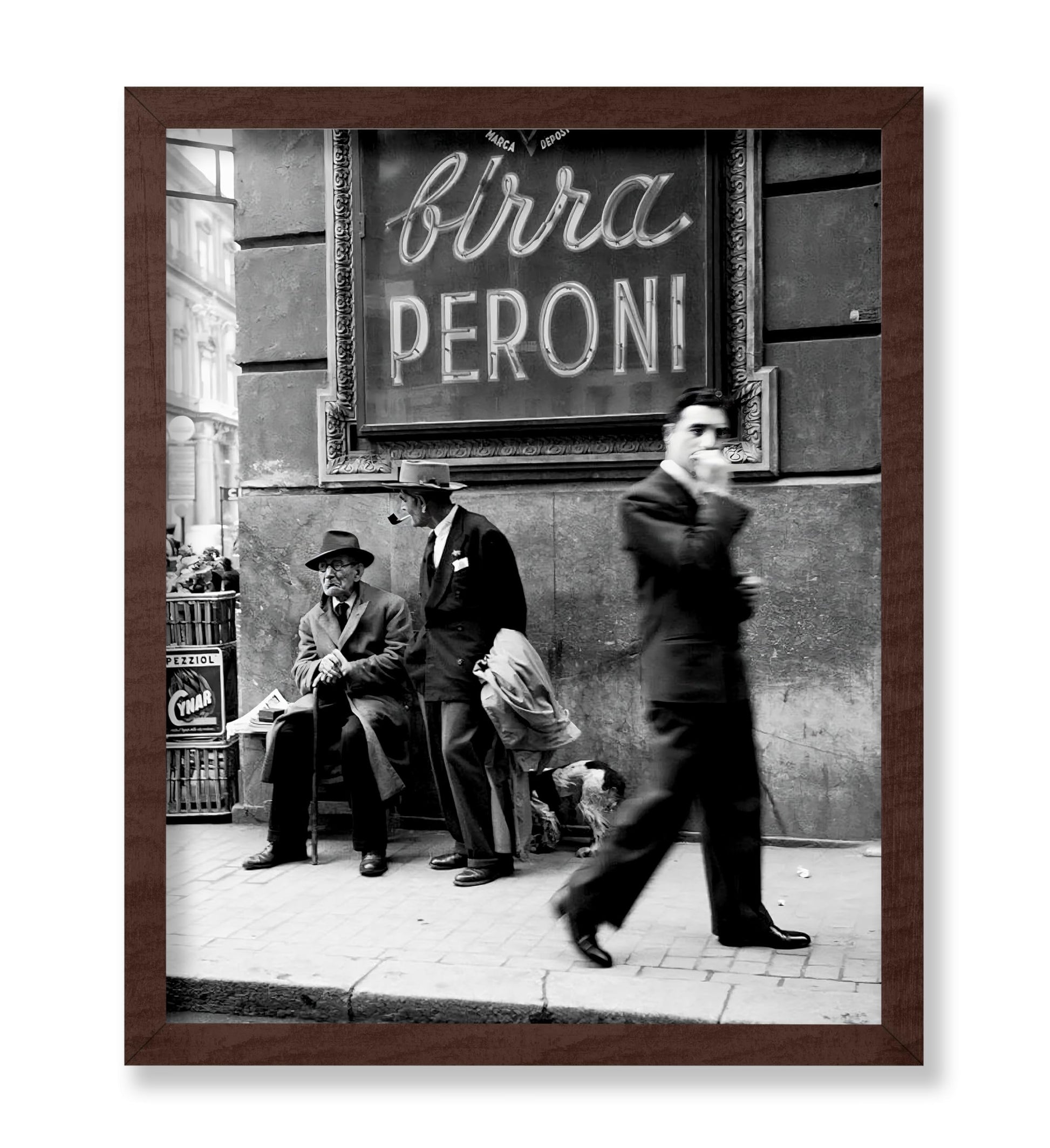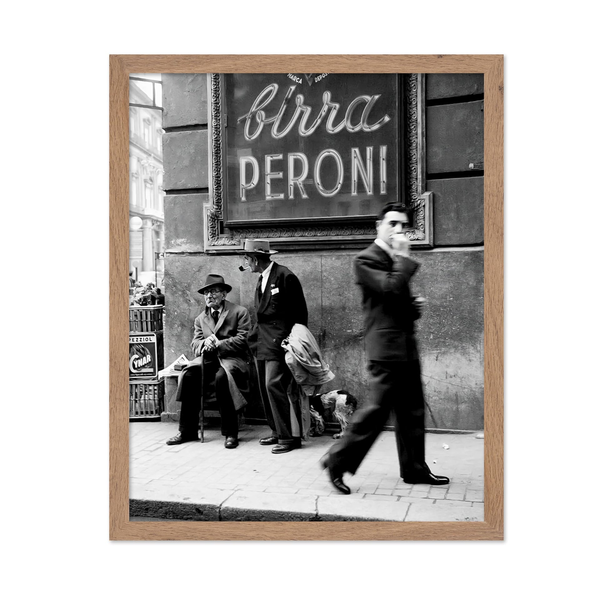This vintage street art adds a pop of vintage charm that fits any wall with men chatting on a Napoli street. Black and white tones capture old Italy's lively feel, pulling you into sunny days and real talks. It sparks warm thoughts of travel and simple joys. The clean photo style brings history close. Hang this travel poster to feel Italy's heart every day.